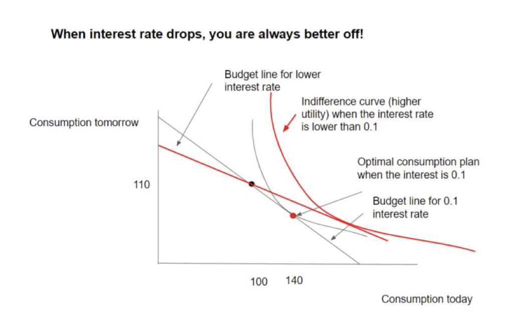 Draw a labelled diagram for an interest rate decrease for a borrower