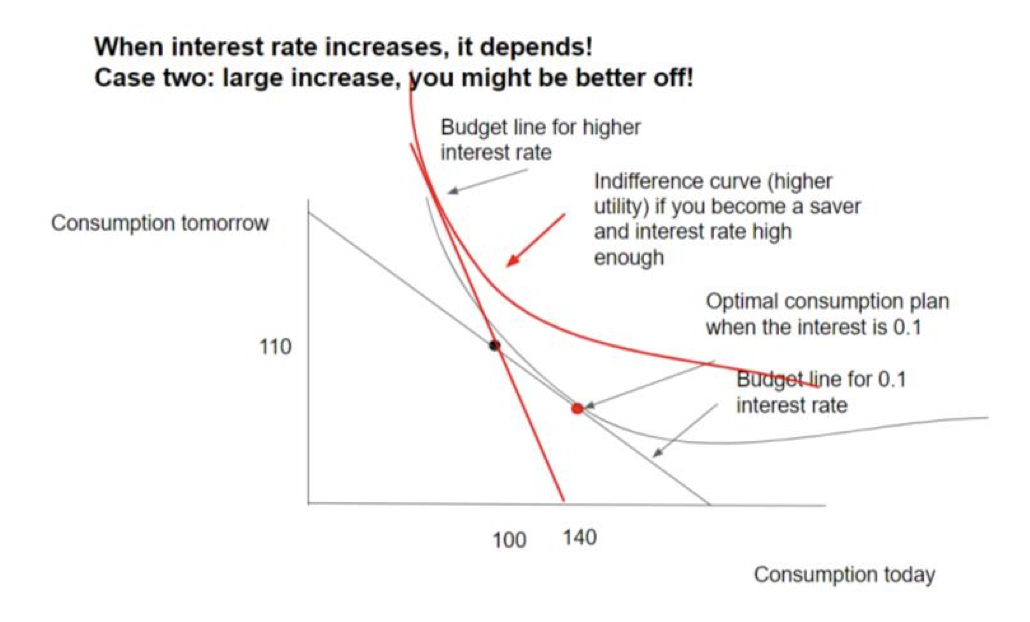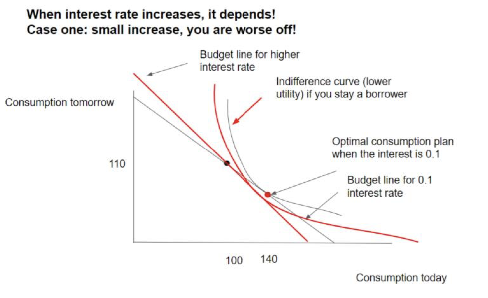 Draw a labelled diagram for an interest rate increase for a borrower (when swtiches to save)
