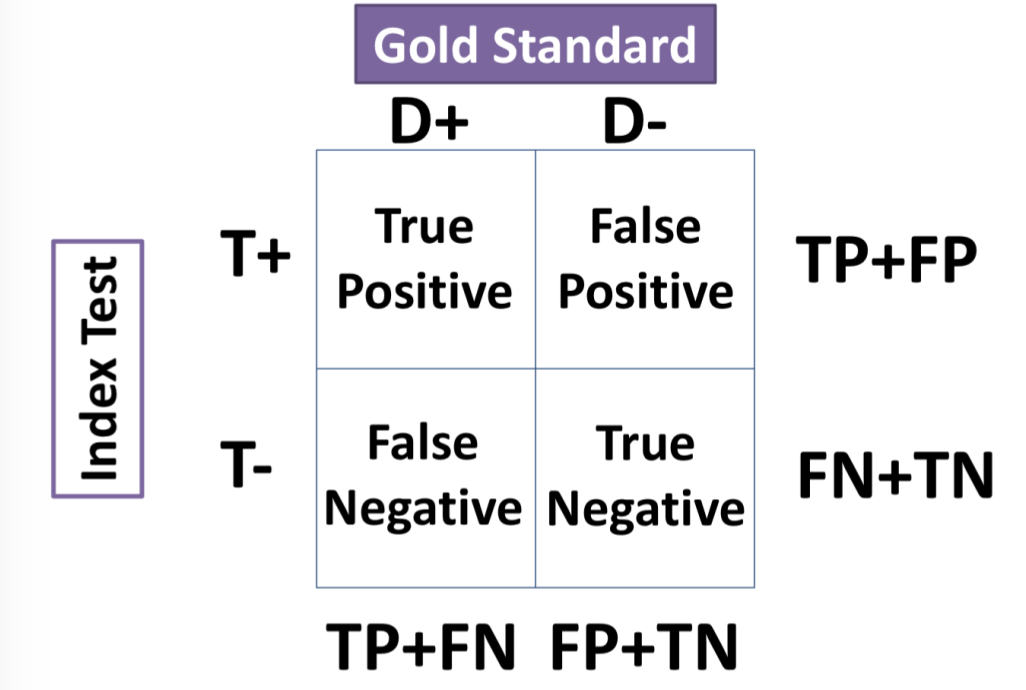 Draw a 2x2 table for a diagnostic study