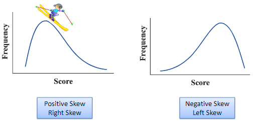 demonstrated on a bell curve when data points are not distributed symmetrically