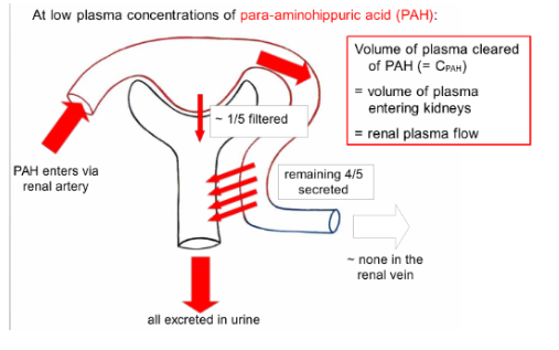 Since all of it is secreted the volume of plasma cleared of PAH = renal plasma flow