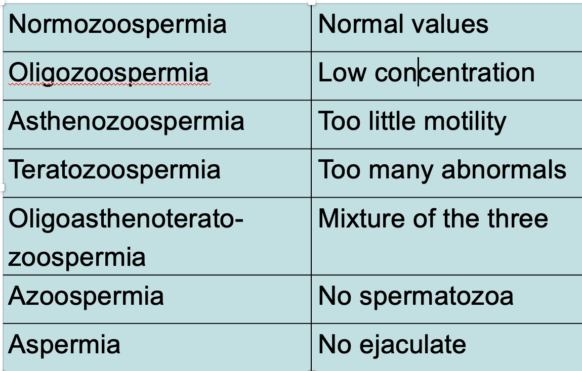 1. Sperm concentration, or density, defined as the number of sperm per ml in the total ejaculate