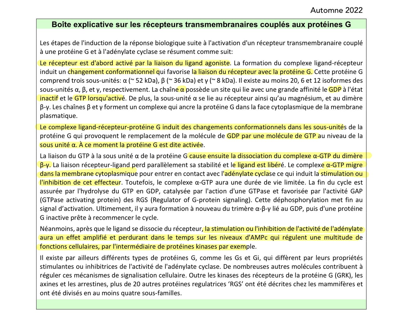 boîte explicative sur les récepteurs transmembranaires couplés aux protéines G