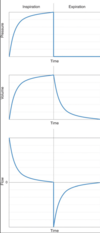 Pressure-controlled breath = the machine will maintain airway pressure as determined by the operator, and inspiration ends when a preset inspiratory time is reached