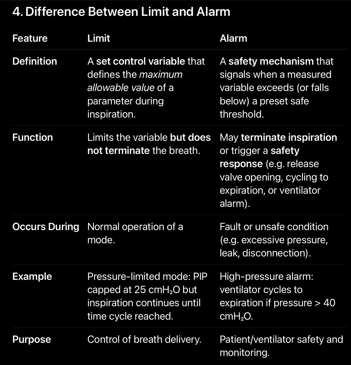 ->The Limit variable determines the maximum value that a controlled parameter (pressure, flow, or volume) is allowed to reach during inspiration.