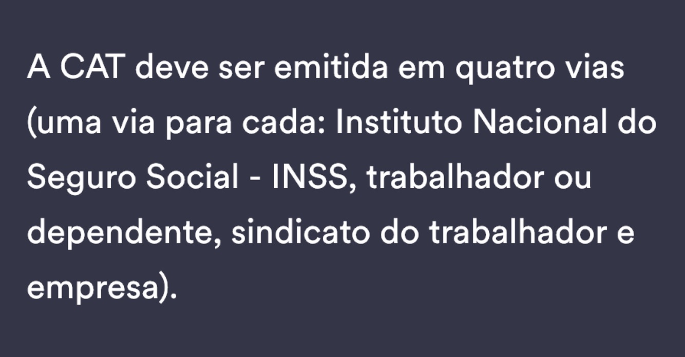 Verdadeiro ou Falso: deve-se emitir CAT para qualquer trabalhador