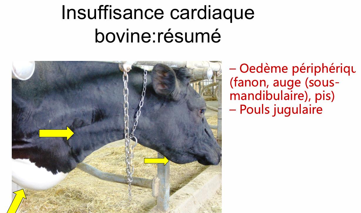 . Parmi ces signes, quel est le symptôme le plus fréquent lors d’insuffisance cardiaque droite chez le bovin ?