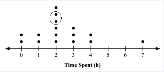 The dot diagram shows the number of hours students spend on the internet each day