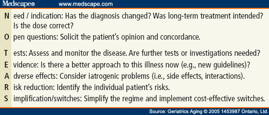 Decision aid for supporting medication review. It consists of a series of rules/suggestions related to high-yield problems in prescribing for older people, both in terms of reducing medication burden (STOPP) and adding in potentially benefical therapy (START)