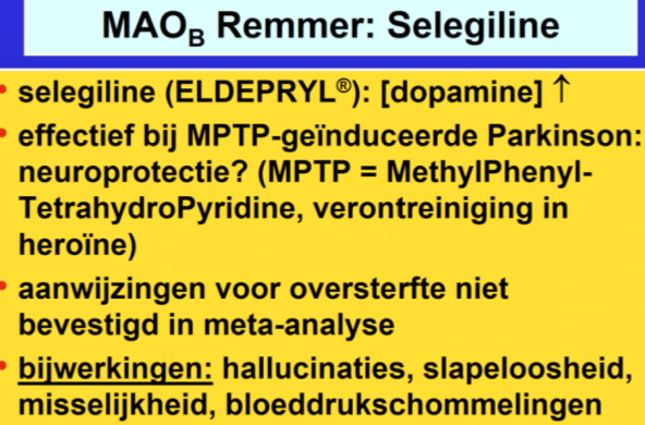 MAOA remmers (erge bijwerkingen door aanwezigheid thyramine dus dieet)