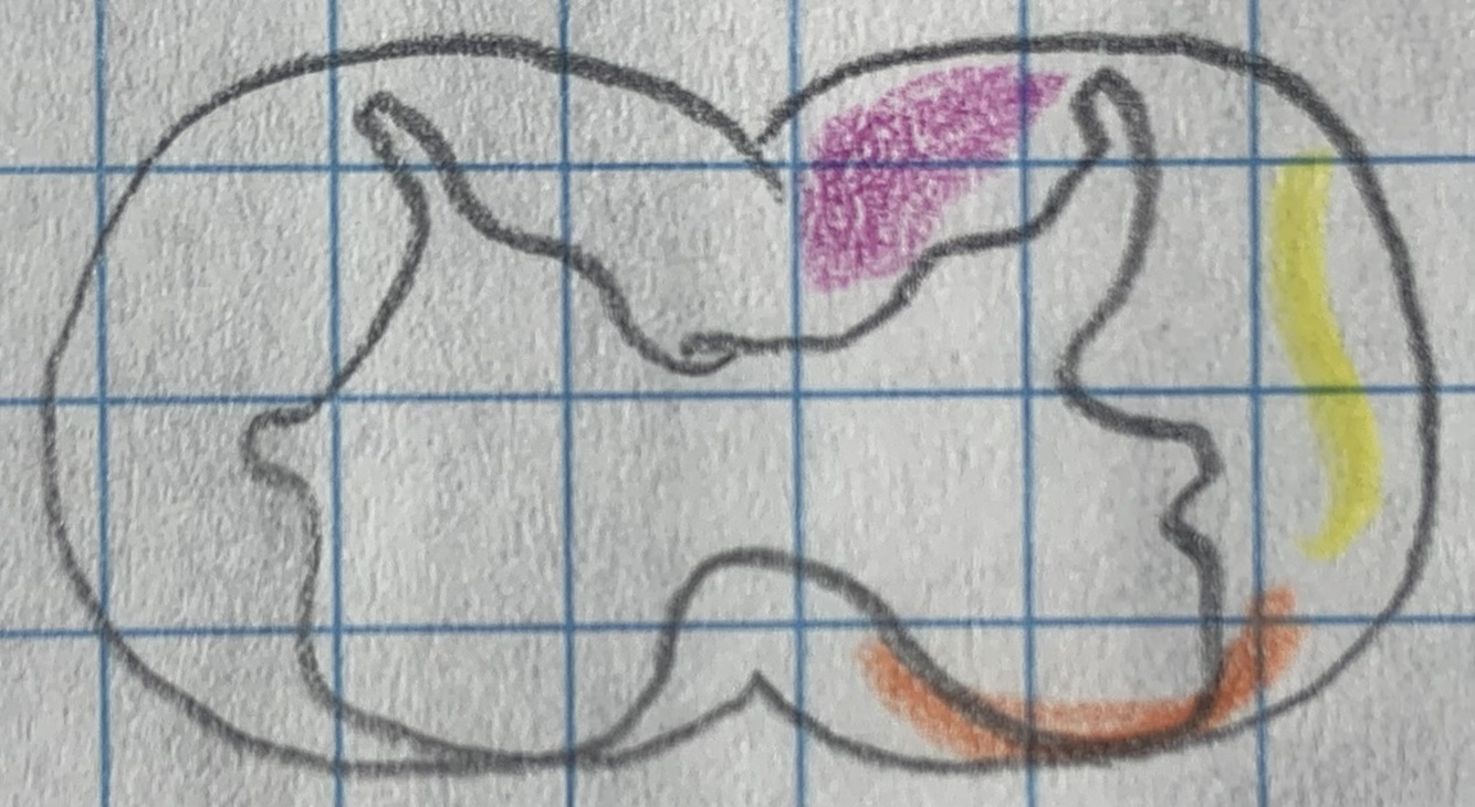 3 llega a la corteza sensitiva, ínsula y giro del cingulo.