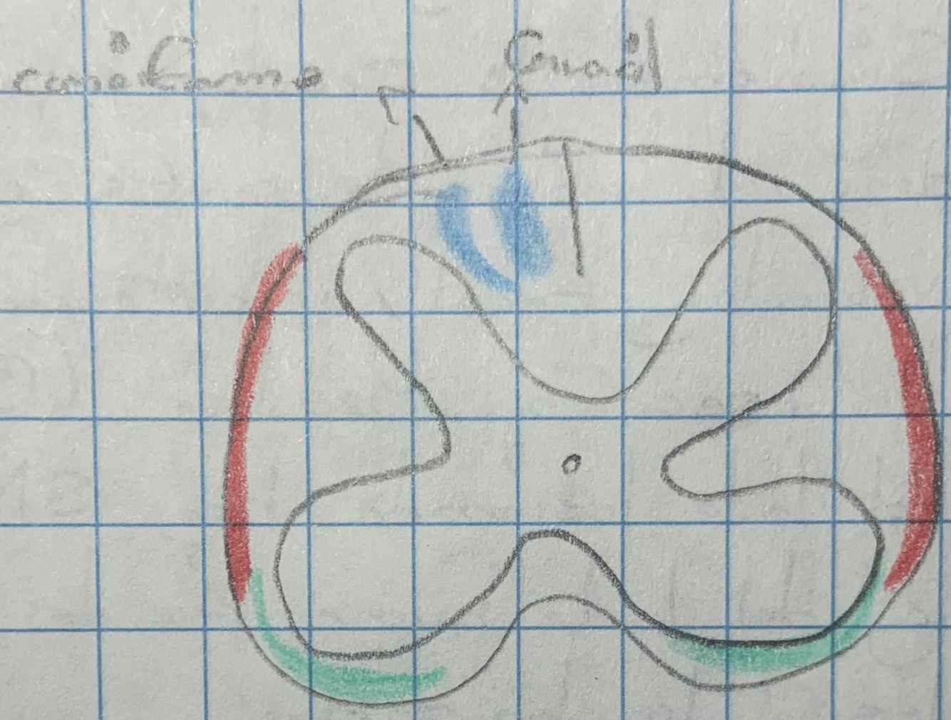 de donde a donde van las 3 neuronas de los tractos ascendentes