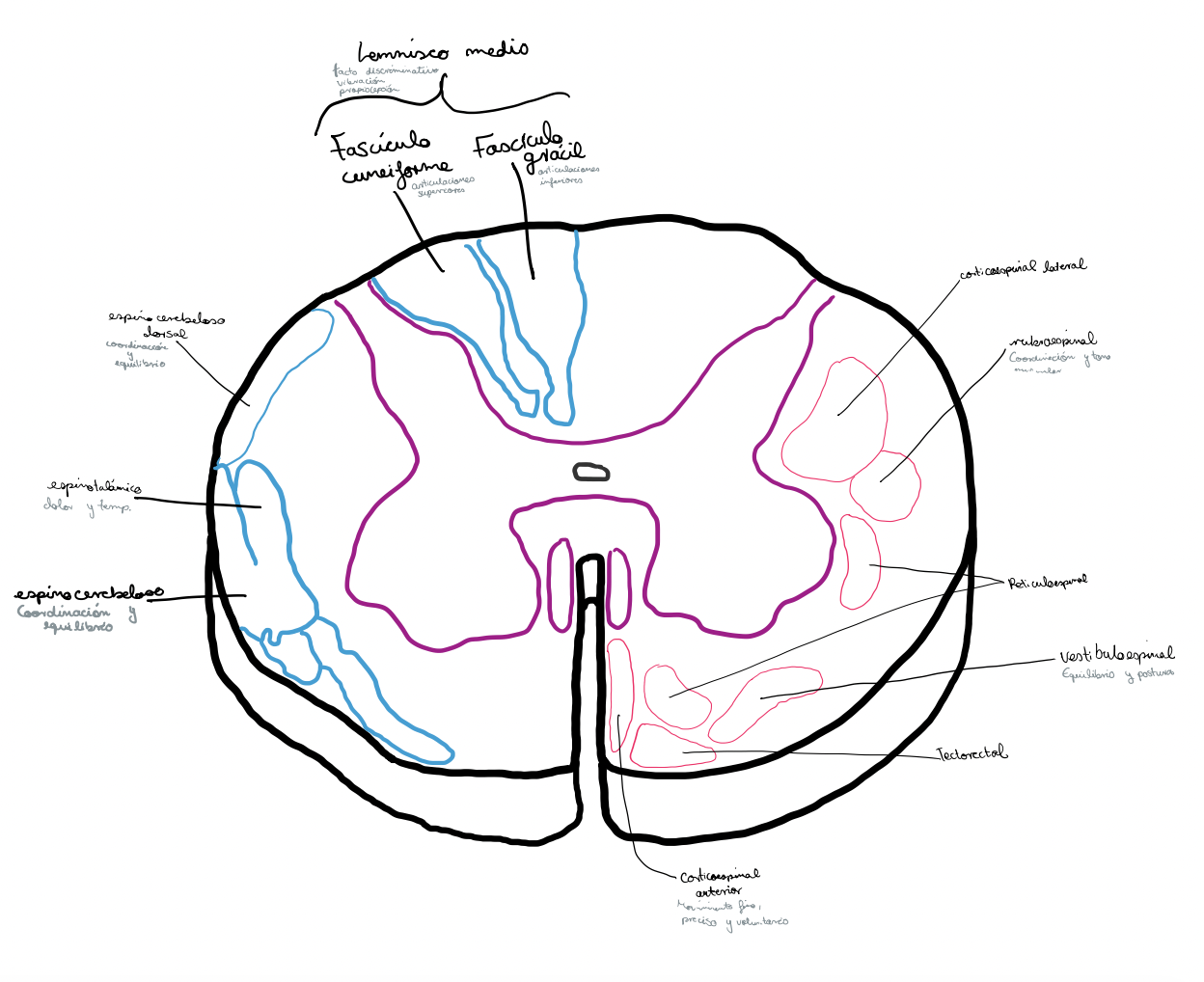 Tracto del corticoespinal que decusa a nivel de las piramides