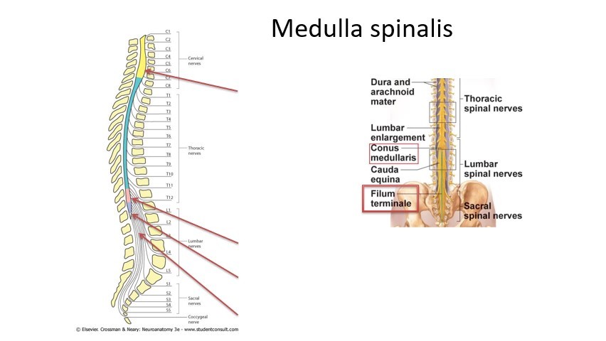 filum terminale ? - er ikke nervevæv som medulla, det er en rent fibrøs streng ( bindevæv) som fungere som et anker, der nedbinder medulla spinalis og sørger for at medulla spinalis er på plads, og ikke snor rundt om sig selv fx.