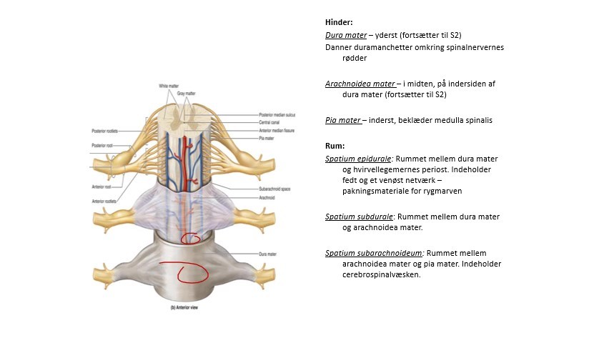Beskriv medulla spinalis 3 hinder ? - Den hårde og blide moder ?