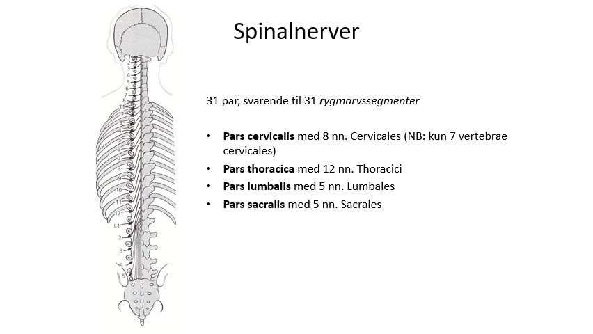 hvor mange rygmarvssegmenter inddeles medulla spinalis? 31