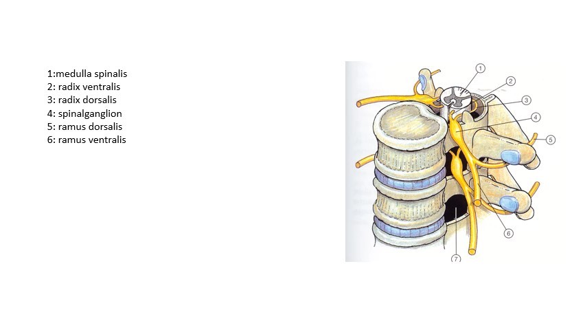 for hvert “horn” Fila radicularia –> radix –> Begge horn forenes i Forarmen intervertebrale og bliver til en spinal nerve,