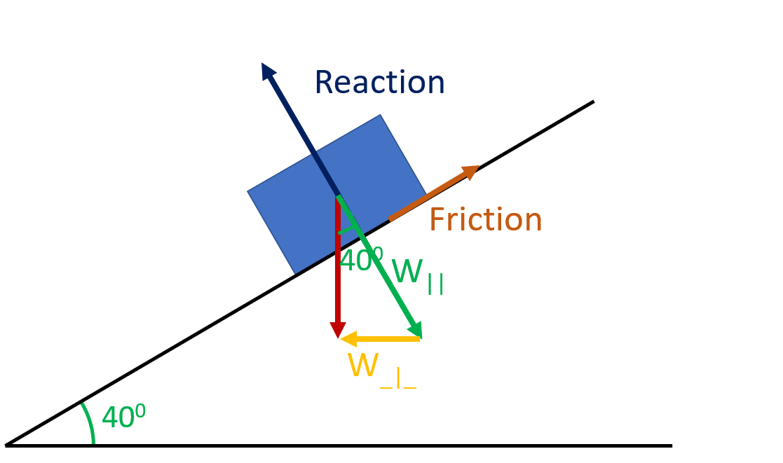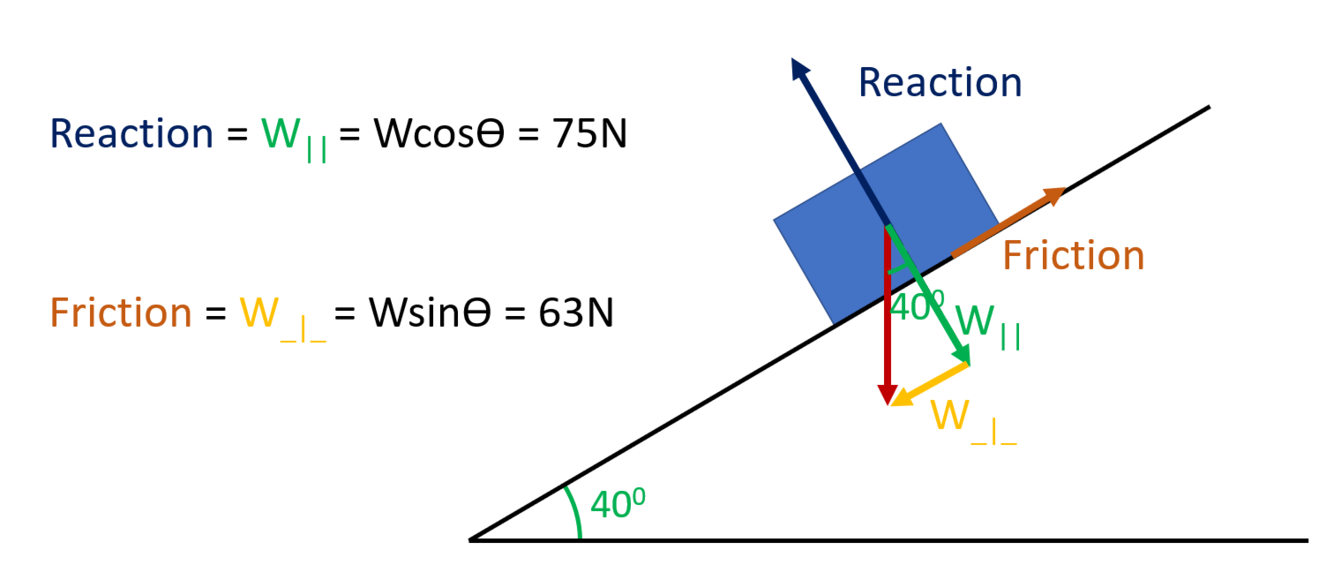 If this box is in equilibrium how would you go about calculating the frictional force and the reaction force?