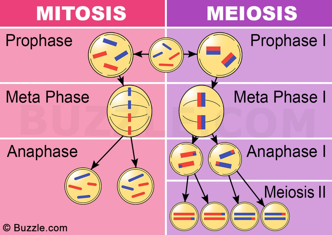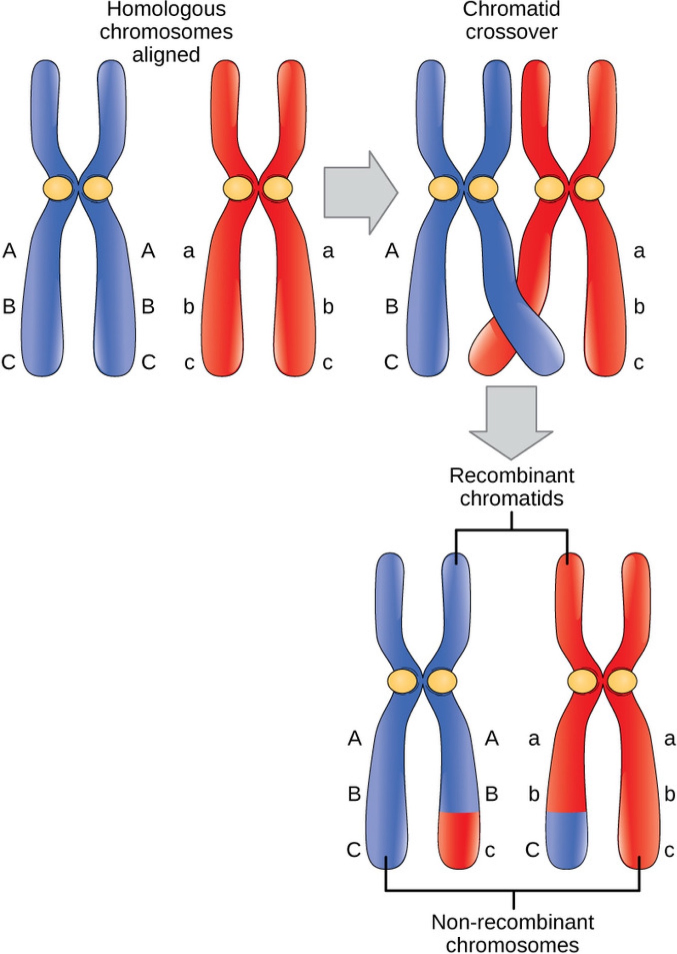 Genetisk variation uppstår genom crossing over i profas I samt genom slumpmässig fördelning av homologa kromosomer under Anafas I