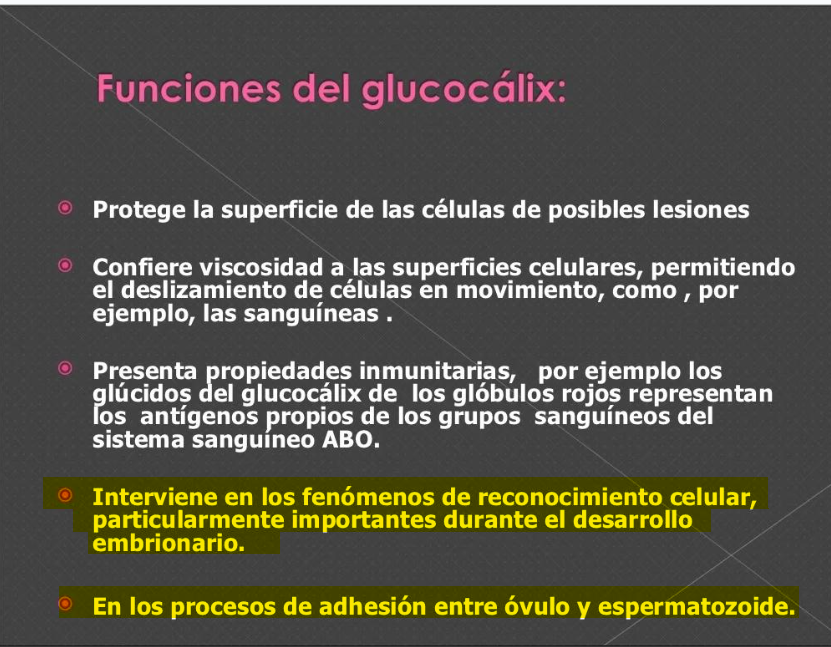 Quem na membrana plasmática intervém em fenômenos de reconhecimento celular, durante o desenvolvimento embrionário, principalmente nos processos de adesão entre óvulo e espermatozoide.