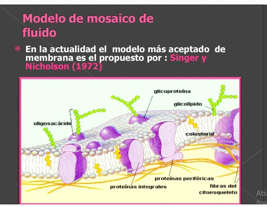 Atualmente o modelo de mosaico de fluido da membrana plasmática mais aceito é o proposto por Singer e Nicholson (1972):
