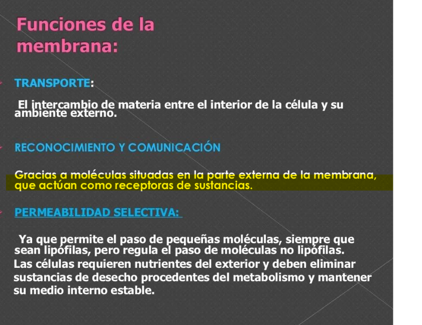 Uma das funções da membrana plasmática é a PERMEABILIDADE SELETIVA, pois permite a passagem de moléculas grandes, desde que sejam lipofílicas, mas regula a passagem de moléculas não lipofílicas.