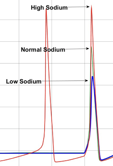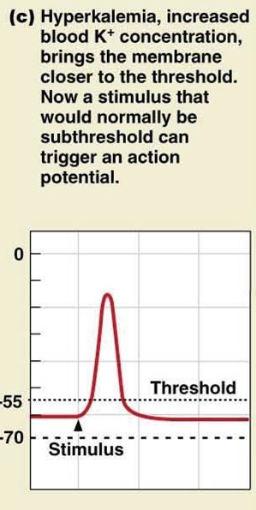 Resting potential is more positive, so easier to reach a threshold potential-but retains the same peak voltage on the upstroke