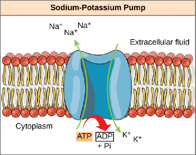 2 potassium into cell and 3 sodium out of the cell