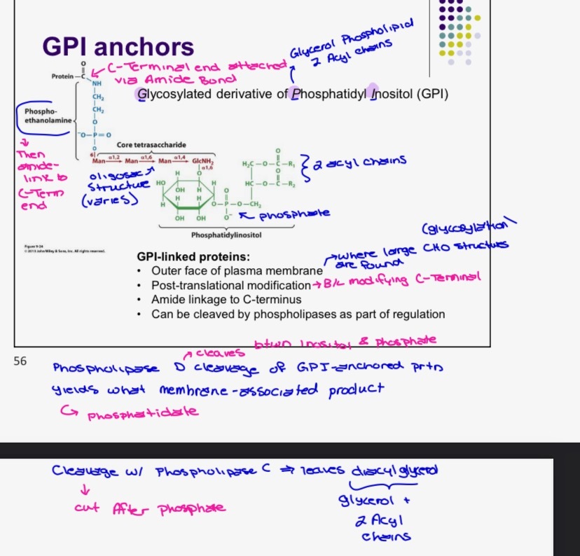 - Anchors proteins to membranes