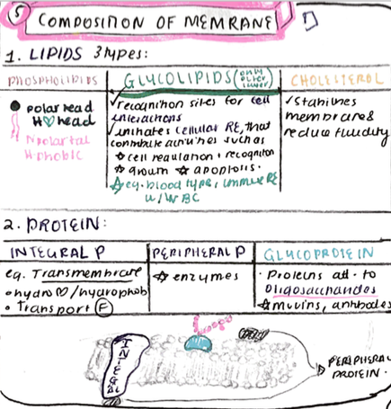 What are the main lipid and protein types that compose of the membrane?