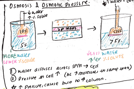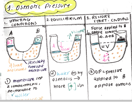 Describe osmosis and osmotic pressure in 2 stages
