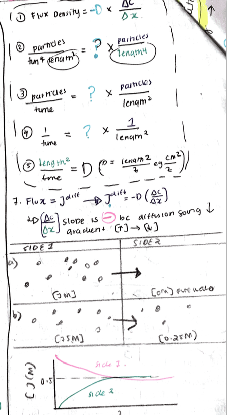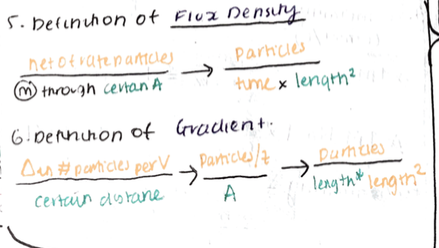 In ficks law, define flux density and gradient