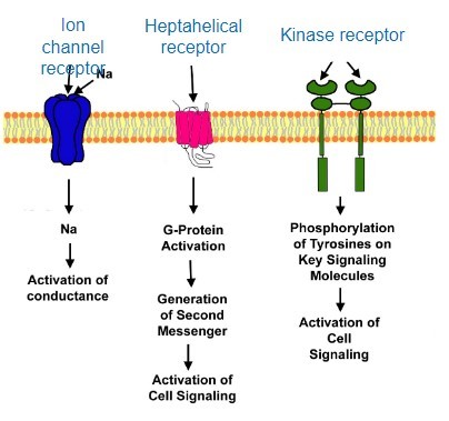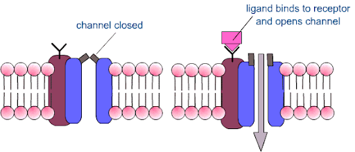 -when ligand binds to receptor, causes conformational change in associated ion channel so ion can pass through