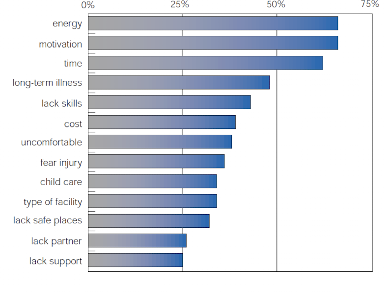 name the top 5 barriers reported by sedentary canadians