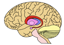 The caudate nucleus. Component of the basal ganglia. Brain’s reward system and functions as part of the cortico–basal ganglia–thalamic loop. Goal directed behavior (shown in above image).