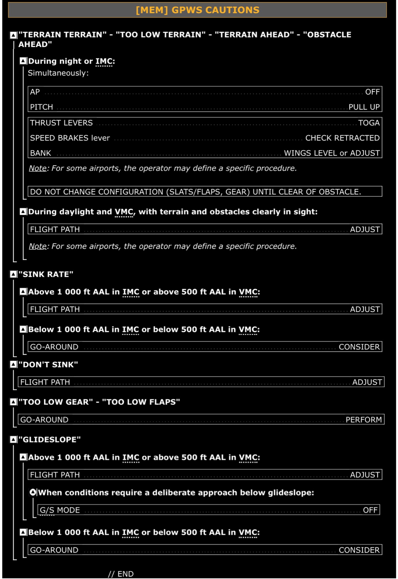 TAWS: Cautions procedure