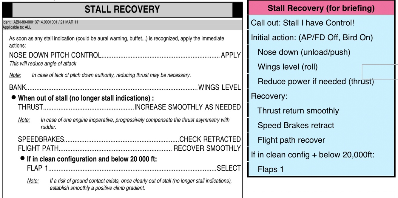 Stall Recovery procedure