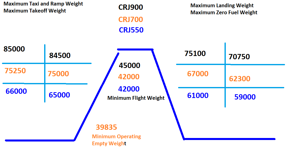 Minimum Operating Empty Weight 39,835 lbs (only crj700)