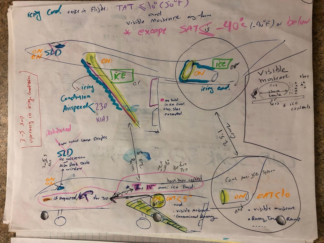 Icing conditions exist in-flight at a TAT of 10°C (50°F) or below, and visible moisture in any form is encountered (such as clouds, rain, snow, sleet or ice crystals), except when the SAT is -40°C (-40°F) or below.