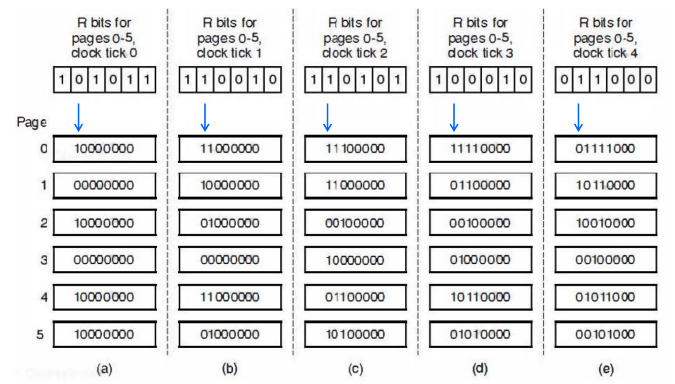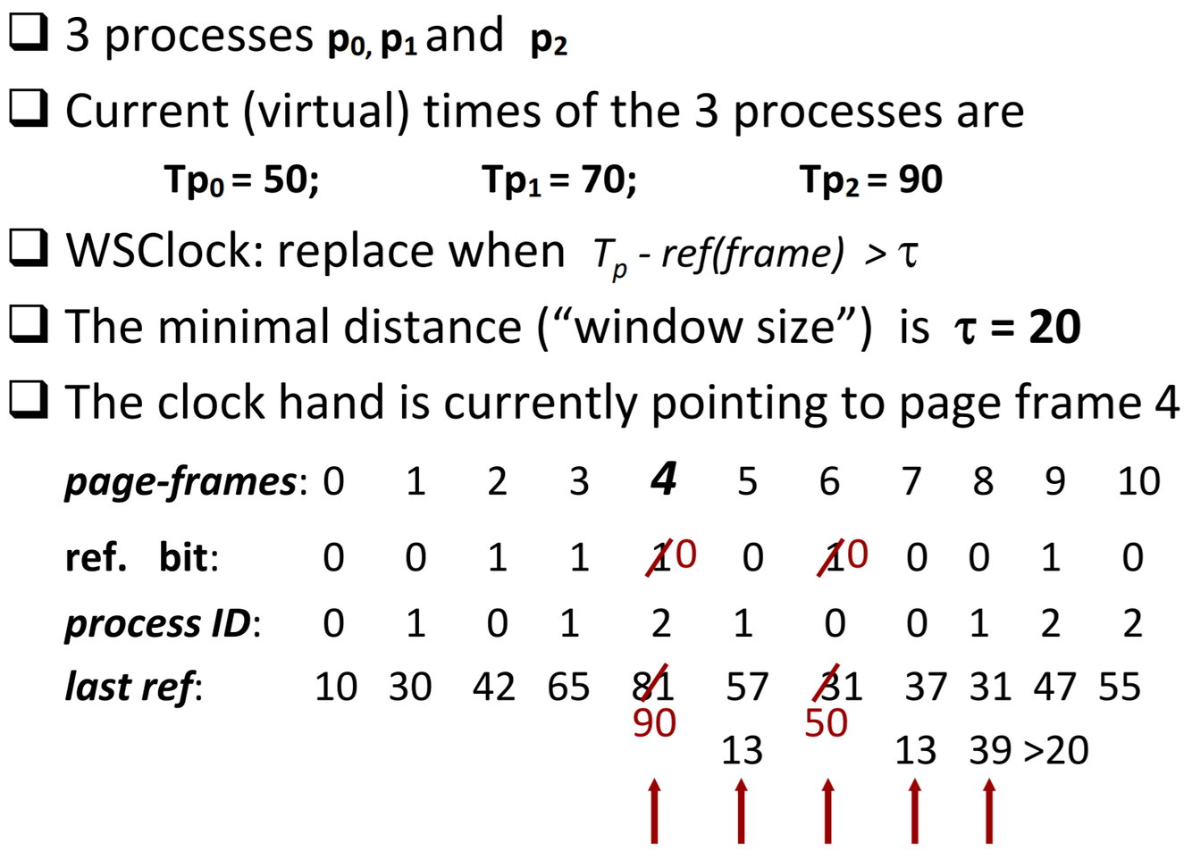 pages reference bits ,time of last reference [ref(frame)], and current “virtual times” of processes[Tp].