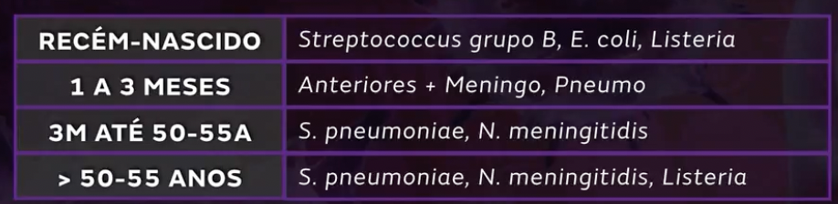 QUAIS AS PRINCIPAIS ETIOLOGIAS DA MENINGITE DE ACORDO COM A FAIXA ETÁRIA?