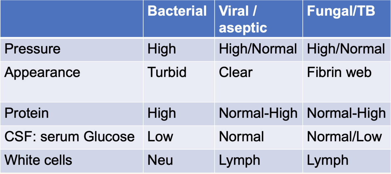 3 - elevated CSF, WBC and protein count