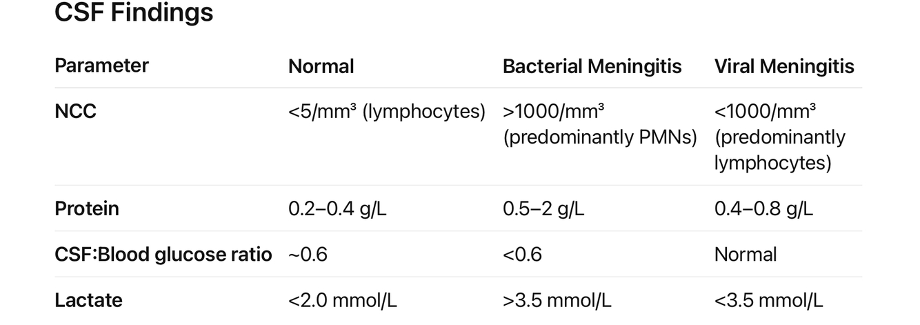 * CSF biochemistry, lactate