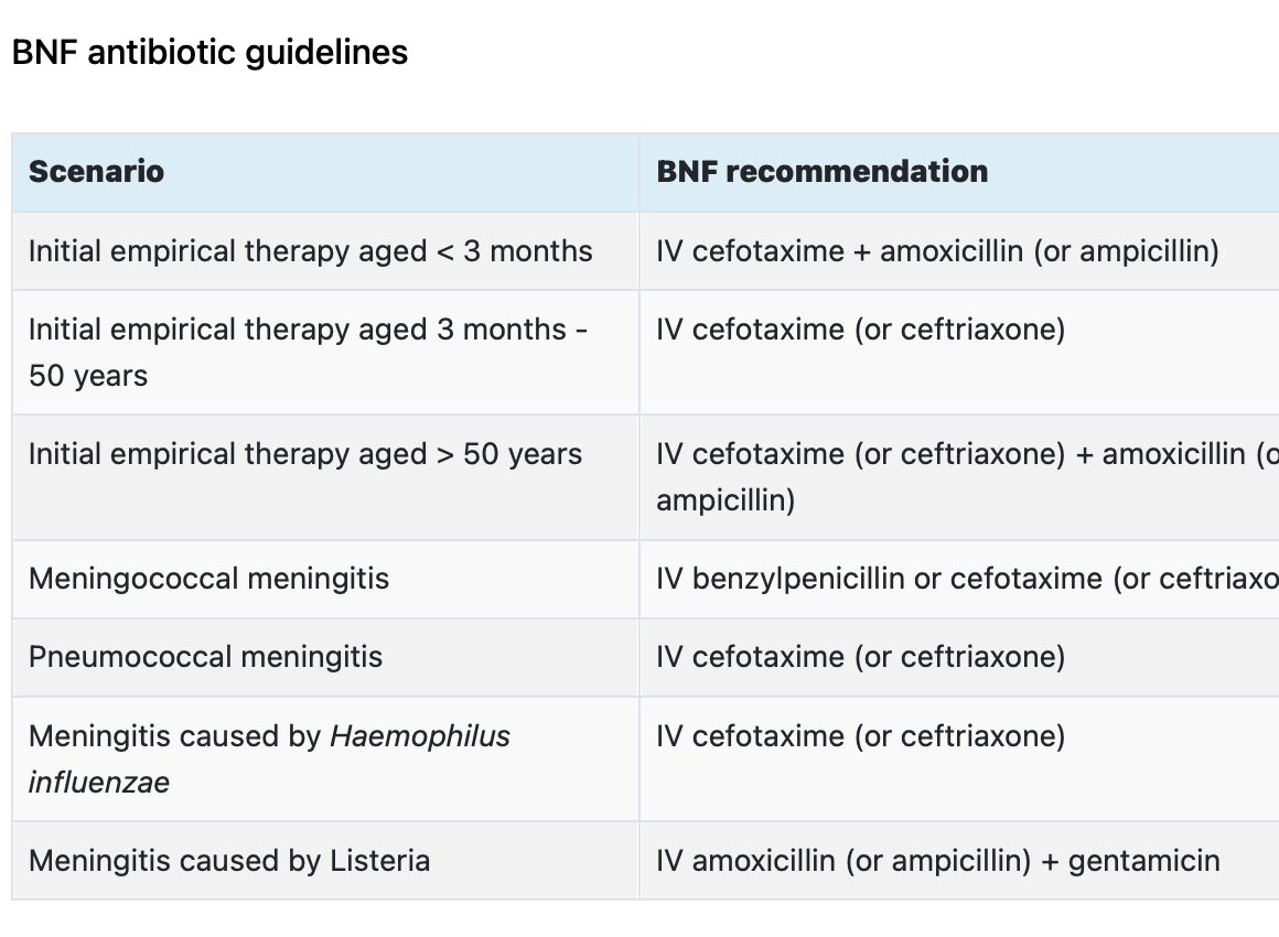 Children seen in the primary care setting with suspected meningitis AND a non blanching rash should receive an urgent stat injection (IM or IV) of benzylpenicillin prior to transfer to hospital, as time is so important. The dose will depending on their age.