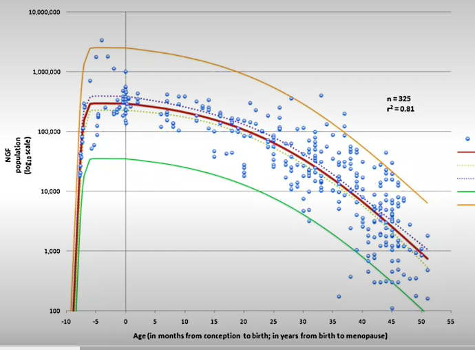 (NGF) pool and subsequent decline in NGFs until ovarian depletion - when NGF count