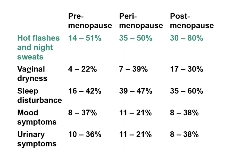 -Hot flushes, night sweats, vaginal dryness and discomfort during sex,