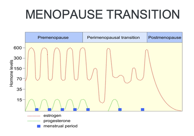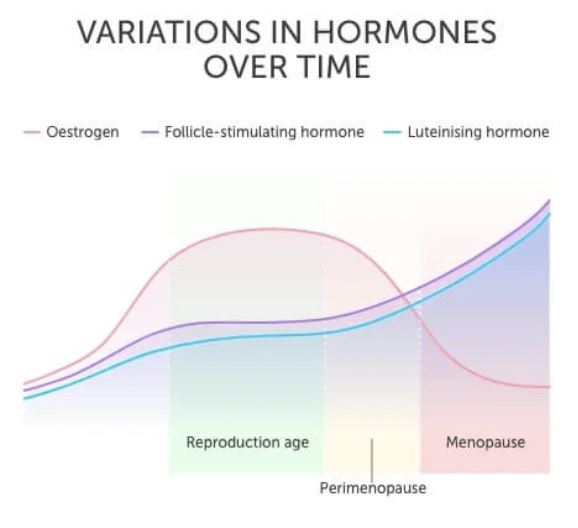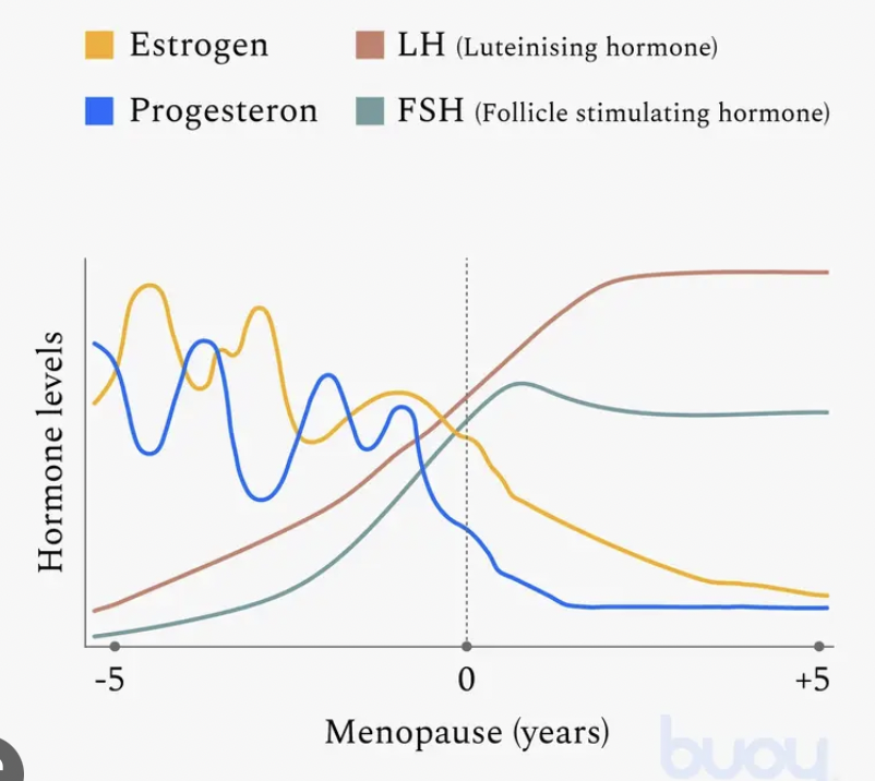 How does failing follicular development + lack of oestrogen lead to symptoms of menopause?