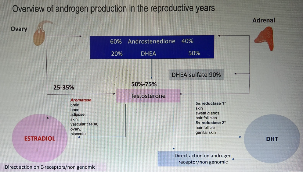 Androgen levels decline with age in women with no acute change associated with natural menopause.