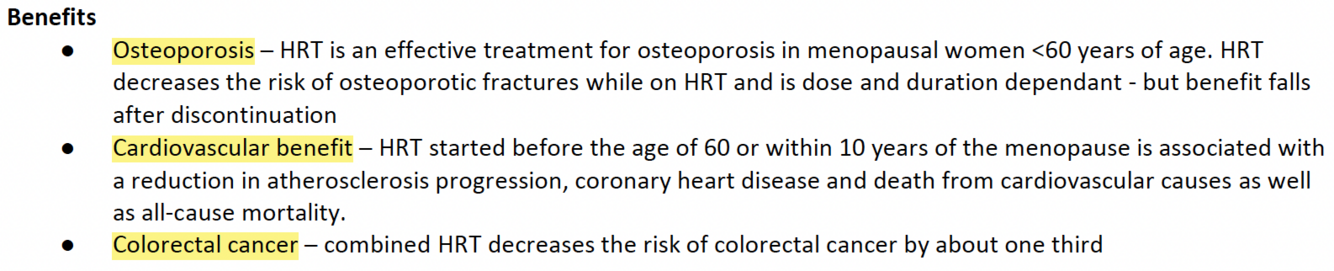 Women with Premature Ovarian Insufficiency (menopause < age 40) and Early Menopause (menopause < age 45) should be encouraged to use HRT at least until the average age of menopause (51) for cardiovascular and bone health benefits