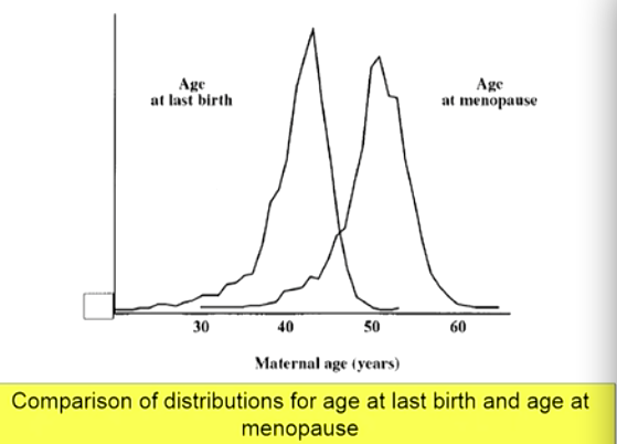 The age of menopause can be correlated with the age of last birth by a 10 year gap of last time of fertility.
